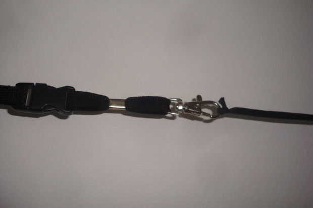 Perfore un agujero en el lado para el elástico. Conecte el elástico con el dispositivo de un lado y con la percha en el otro lado. Quemar el extremo del elástico para no ravel. Listo para usar!