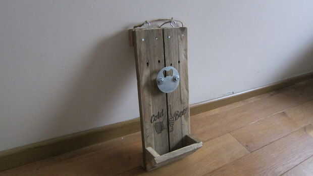 creó este simple reformado plataforma madera abrebotellas, en el espíritu de la oficina, por supuesto.Paso 1: materiales you need:-plataforma-martillo y sacaclavos-la Sierra-taladro-tornillos-pintura (utiliza una variedad de marrón, rojo, azul, verde