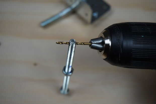 Luego perfore un agujero a través del extremo del 1/4" perno... este será donde se coloque el resorte.