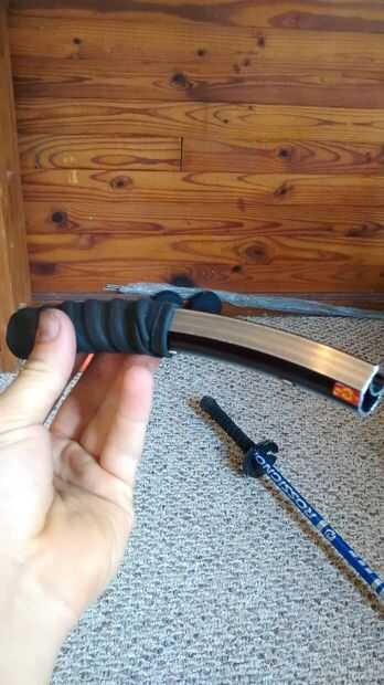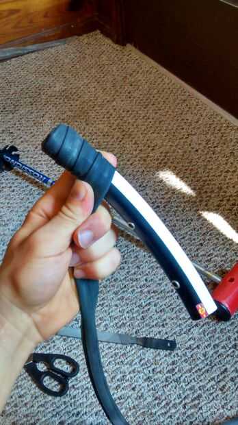 Tomar esa llanta de repuesto y envuélvalo alrededor del borde. Si nunca has envuelto barra cinta es similar. Ayuda a cortar el tubo de la bicicleta en un ángulo en el extremo para hacer el abrigo parece más fluida. Una vez a la longitud deseada Remétala sí mismo.