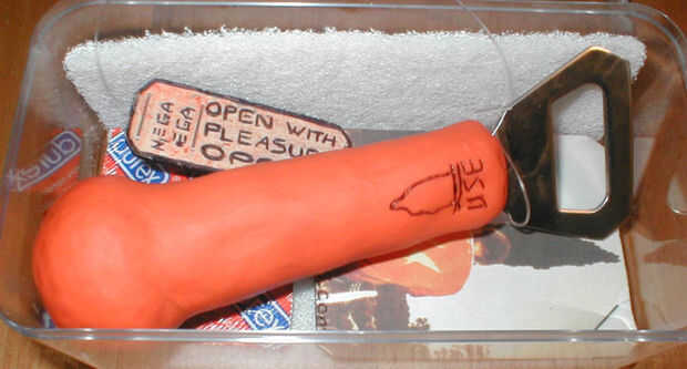 Abridor de placer está hecho de FIMO y abrelatas de botella del viejo.