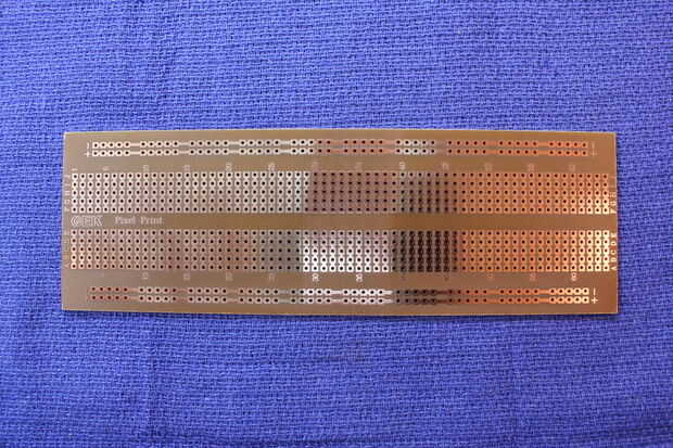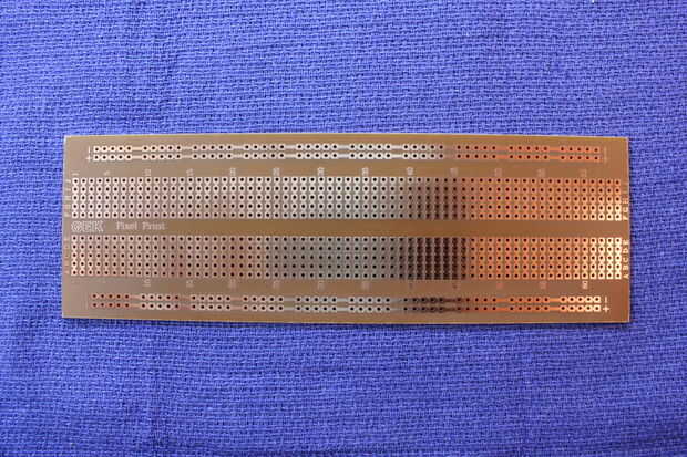 lijar suavemente los rastros de cobre a un brillo hará mucho mejores conexiones de soldadura. Si usted toma el tiempo para el proyecto de breadboard primera, sólo puede copiar la placa a la placa pc.