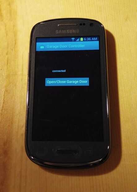 El Edison ejecuta un script en Python que escucha en un socket WiFi (puerto) y cuando recibe la contraseña correcta (sobre la conexión de socket WiFi desde la app Android) el Edison activará un relé conectado al botón de abrir/cerrar del abrelatas de la puerta de garaje. La aplicación para Android tiene una interfaz muy simple/familiar que consiste en un botón de pantalla táctil para abrir/cerrar la puerta del garaje. Un menú de "Configuración" de la aplicación está disponible para configurar la configuración de la WiFi y la contraseña personalizada de los usuarios.