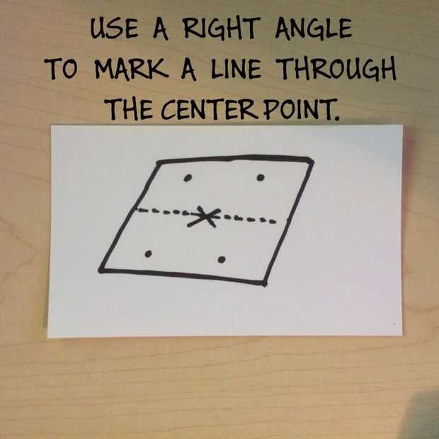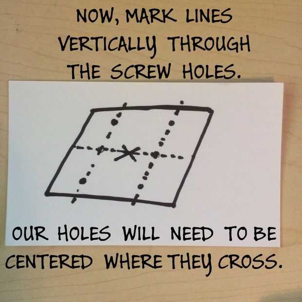 Finalmente, todo lo que tenemos que hacer es dibujar una línea entre la parte superior e inferior de agujeros. El punto donde esta línea cruza la línea central es donde queremos instalar nuestro botones.