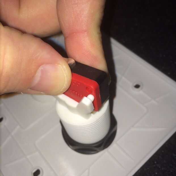 - Cuidadosamente termine de apretar la Asamblea de botón para que quede ajustada con la superficie del botón en la posición correcta.
