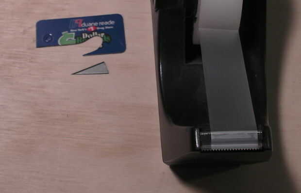 Agarrar alguna cinta transparente y cinta la cuchilla X-acto en su lugar.