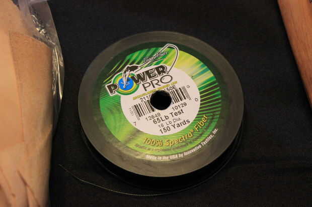 2. línea, usé 65 libras prueba sedal. Es fino y un color verde oscuro que me gusta. No necesita haber encerado lino o tendones.