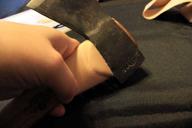 Una vez que la longitud, vas a querer tomar este tiempo para cortar las zonas que están en el camino. Hacer un abrigo tan apretado como puede con las manos y usar algo duro presionar la forma en la piel. El corte de la forma hacia fuera.