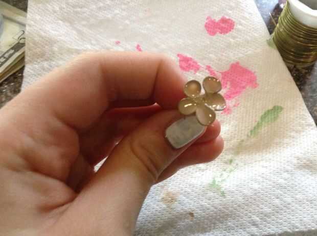 Tomar el esmalte de uñas y limpie ligeramente sobre el pétalo y el esmalte de uñas debe crear una fina película sobre el pétalo.