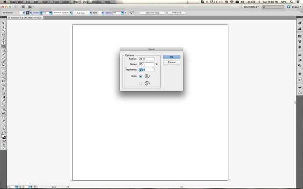 Haga clic en la mesa de trabajo en el centro de la lona y la liberación a los ajustes de la herramienta espiral.