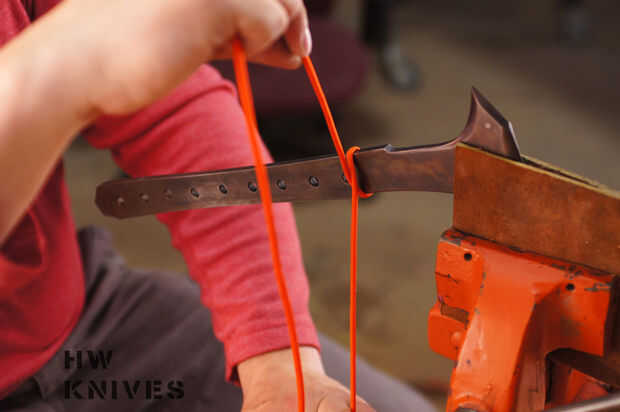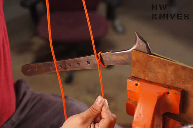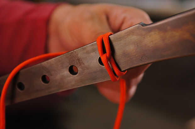 Primero encontrar el medio de la cuerda y colóquela a un lado de la herramienta.