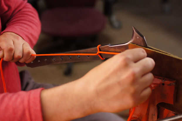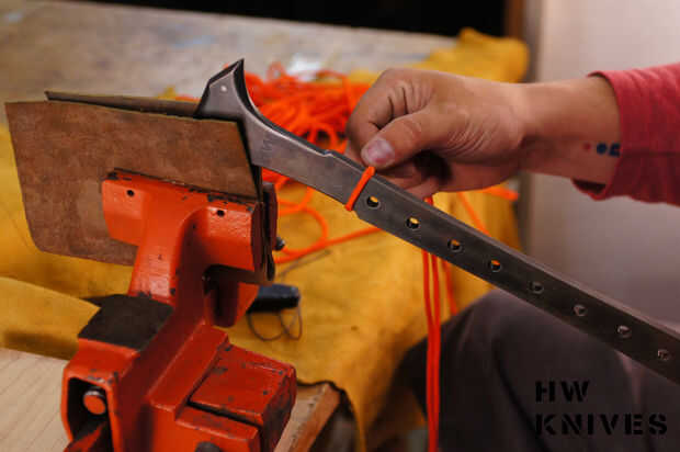 A continuación tome los extremos y la cabeza hacia el otro lado de la herramienta con ellos.