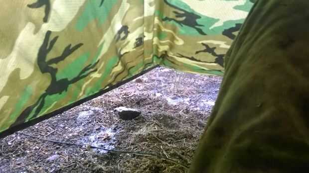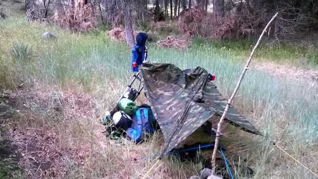 Asegúrese de atar la capucha del poncho cerrado, no quieren un agujero grande en medio de su refugio.