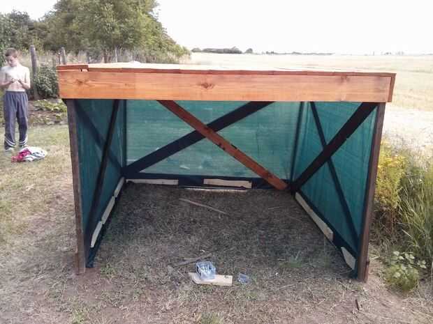 Envuelva la tela alrededor de los postes y añadir tablas diagonal internas.