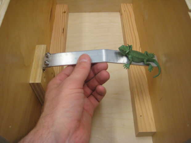 También he añadido un trozo de madera contrachapada de 3/4" al interior de la caja en el lado izquierdo de la palanca que tira el lagarto. Se verá más sobre esto en el siguiente paso para el desbloqueo.