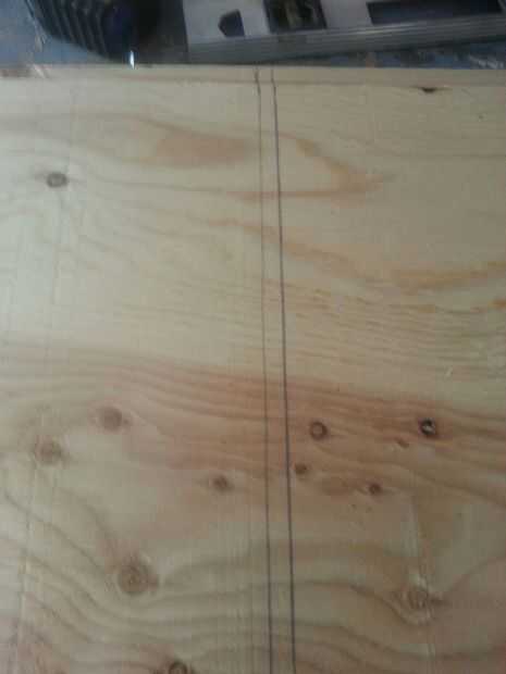 1 marcar los lados donde voy hacer la muesca para la plataforma que mide 12 pulgadas de la parte inferior de la primera línea. puesto que mi madera era una media pulgada de espesor medido a una media pulgada de esa línea.