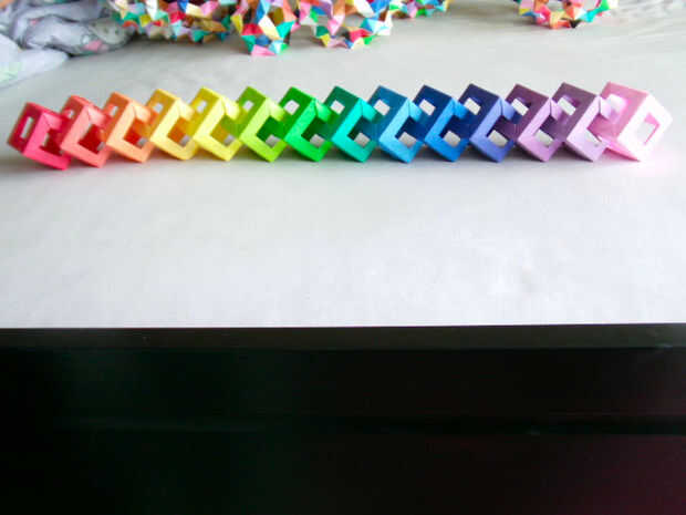 Usted puede hacer un cubo abierto propio usando solo 12 hojas de papel y algunos dobleces simples. Estos cubos abiertos son bastante divertido y se ven bien en color sólido y arco iris.