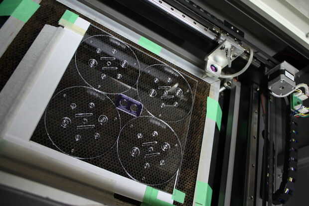 Colocar en una hoja, cierre la tapa y presione start. Lo que sigue es diez horas cada 10 minutos (60 hojas) levantando las piezas cortadas, reemplazar con una hoja nueva y pulsando go.