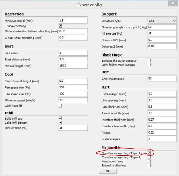 Esto ayuda a combinar/boolean todas las mallas que has creado. Es mejor crear un hermético mallas 3d, pero Cura le permite a by-pass un cierto nivel y hace más fácil impresión en 3d.