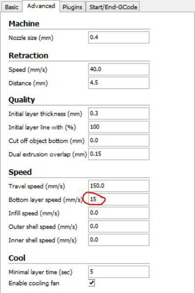- Primera capa velocidad conserve esto a 15mm/s