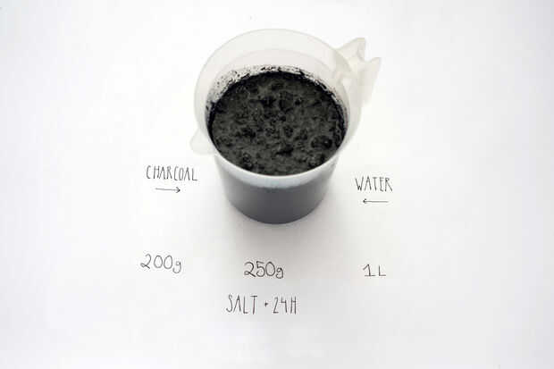 - Dejarlo reposar 24 horas para que la sal penetre el carbón. Químicamente, esto activará el carbono, abriendo los poros aún más.