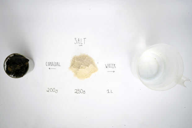 - Combinar el carbón en una mezcla de 25% de la sal con el 75% de agua y se mezcla todo junto.