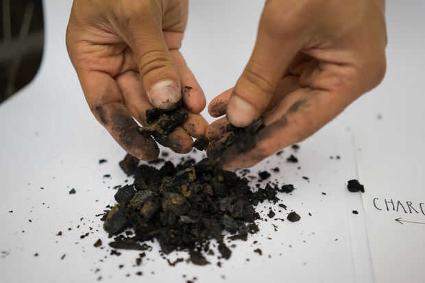 - Tomar el carbón de leña que has recogido y desmoronarse hacia arriba en pequeños pedazos, quieres el carbono que tiene mucha superficie.