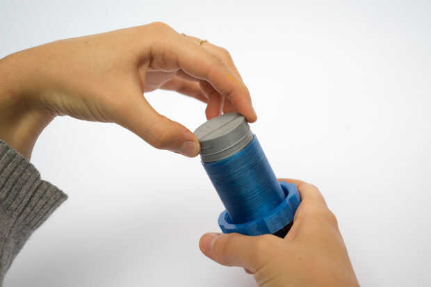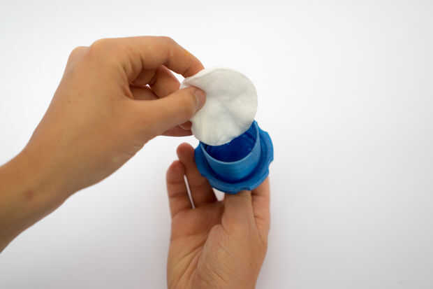 Se pueden ver algunas partículas de carbono en el agua filtrada. Para filtrar hacia fuera partículas de carbón de leña más finas o polvo, a pesar de carbón en polvo no es tóxico, puede colocar un hisopo de algodón de removedor de maquillaje en la parte superior de la tapa con la punta. Llenar el resto del camino con el carbón activado (no te preocupes si todavía un poco mojado). Finalmente, atornille la tapa en la parte inferior! Eso es todo. Ahora puede atornillar el Faircap montado en un jarro de agua y tomar distancia!