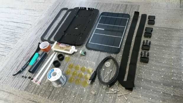 Aquí está una lista de los materiales, herramientas y archivos necesarios. Se proporcionan enlaces para comprar o descargar la mayoría de los artículos. Los artículos en la tienda de Solarcycle Shapeways puede descargarse gratis o comprados directamente y están marcados como sigue: $1 mark-up para componentes pequeños, $2 para los componentes de media y $5 para componentes grandes. Incremento de fondos se destinarán a mantener el sitio de Solarcycle y mejorar la tecnología de cargador solar. Shapeways tiende a tener la impresión de 3D de muy buena calidad en todo tipo de colores y materiales. Resultados pueden variar con otros métodos de impresión 3D. Archivos 3D, archivos Gerber, esquemas y planos de piezas pueden ser descargados de www.solarcyclepower.com