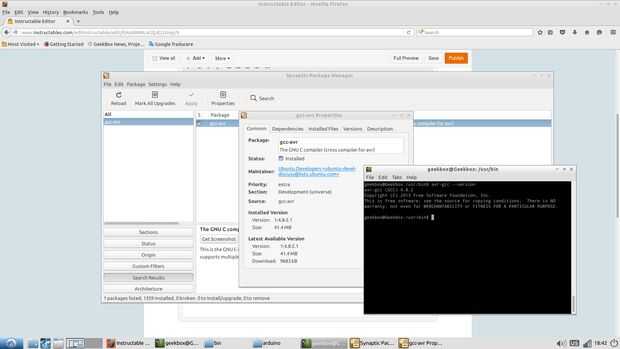 paquete de hecho nombre gcc-brazo-ninguno-eabi como podemos ver en la captura de pantalla de synaptic. Compilador de metal desnudo para brazo encajado chips con Cortex-M0/M0 + / M3 o M4, corteza y corteza-R4/R5/R7-A * procesadores.