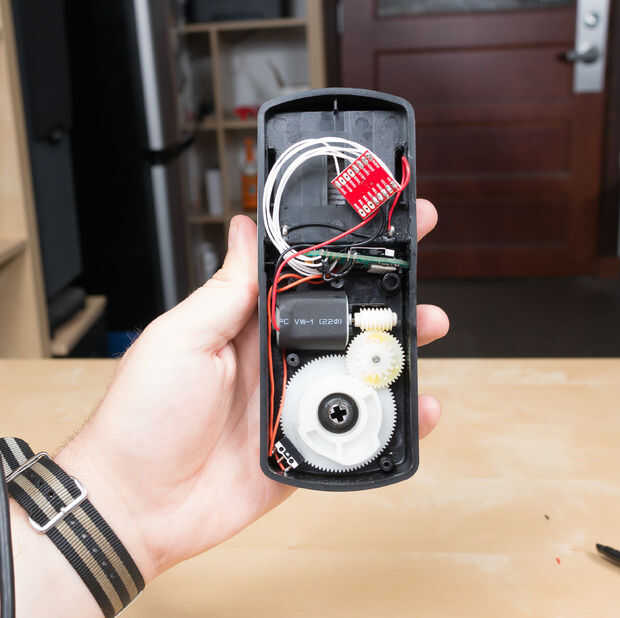 Poner el LightBlue Bean y el tablero de regulador del motor en la cerradura, atornille la placa metálica y deslice el caso. No te olvides de poner las pilas!