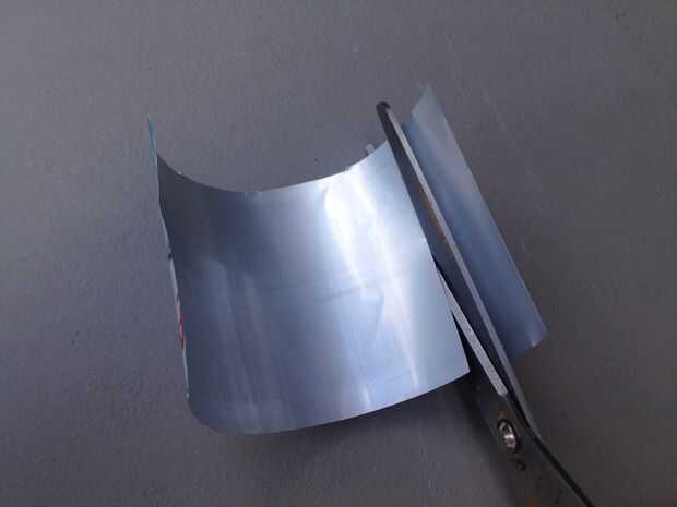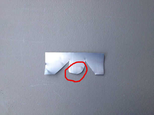 Primero cortar la parte superior e inferior de la lata. Luego, corte una tira de metal (para esta cerradura corté una tira un poco más de una pulgada). Luego corte la tira en la forma de "M"-como se muestra en la imagen. Es importante asegurarse de que alrededor de la parte inferior de la sección central (la parte de un círculo rojo). Esto hará que sea mucho más eficaz que si es plana.