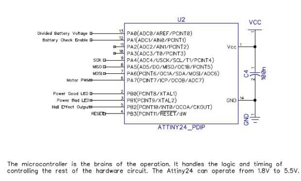 Por lo tanto, vamos a añadir un microcontrolador para periódicamente verificar el estado de la cremallera y alertar al usuario si su vuelo es hacia abajo. La mayoría de aquí el trabajo se realizará en software. En la elección de un microcontrolador, fui con una familia ya tenía un programador para, y que conocía a un público más amplio - el ATtiny. Estos son pequeños pedacito 8 microprocesadores con tensión abajo a 1.8V, perfecto para una aplicación pequeña batería. No necesitamos mucha potencia de procesamiento, y no necesitamos muchas entradas o salidas.