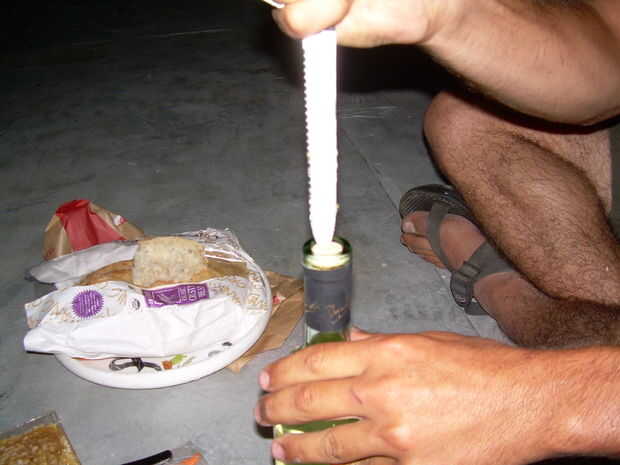 Una vez que el corcho es ahora suficiente para hacerlo, tire de él con la mano.
