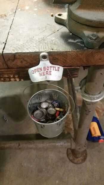 Por supuesto siempre es más fácil usar el abrelatas de botella en la barra (sí hay un tornillo en mi barra de parte superior, que es en realidad un antiguo Banco de trabajo hecho en los años 50 por los dueños originales de la casa).