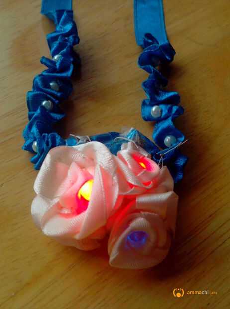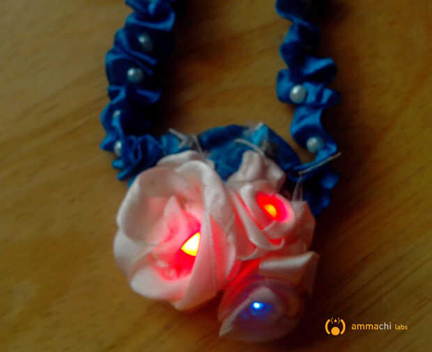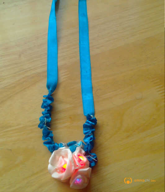 En este instructable le mostraremos cómo hacer un collar de cinta con intermitente LED. Los LEDs son alimentados por una célula de la moneda a través del hilo conductor y es controlado por un tablero del microcontrolador LilyTiny . Puesto que el LilyTiny viene con patrones de parpadeo de LED pre-programados no necesita hacer cualquier codificación en todo! Además la electrónica involucrada es bastante sencilla de implementar. Esta es una introducción sencilla y eficaz en vestibles electrónica para principiantes!