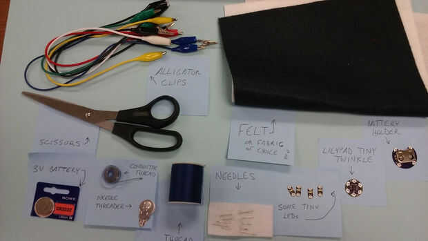Usé todos los productos de Lilypad, pero usted puede cambiar con cualquier cosa que te gusta. No tienes que usar LEDs de Lilypad específicamente.