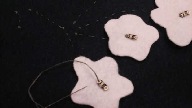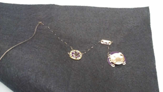 Coser con una nueva pieza de hilo cada vez! De lo contrario se cortocircuito en el circuito, y no habrá ninguna bastante luz.