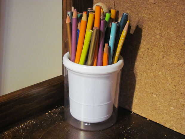 tuvimos un portalápices para hacer en un compartimiento secreto. se utilizaron 3 grapas, cartón, chatarra, icopor, botón y cadena. La espuma de poliestireno se hizo para detener el ruido. El botón y staples hizo un sistema de bloqueo. el cartón es la