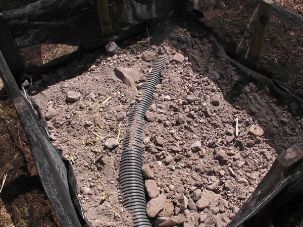 -Poner el codo en el extremo de la manguera de drenaje flexible y conecte un pedazo largo de 3 pies de tubo de PVC de 4" hasta el codo, para que el PVC es vertical.