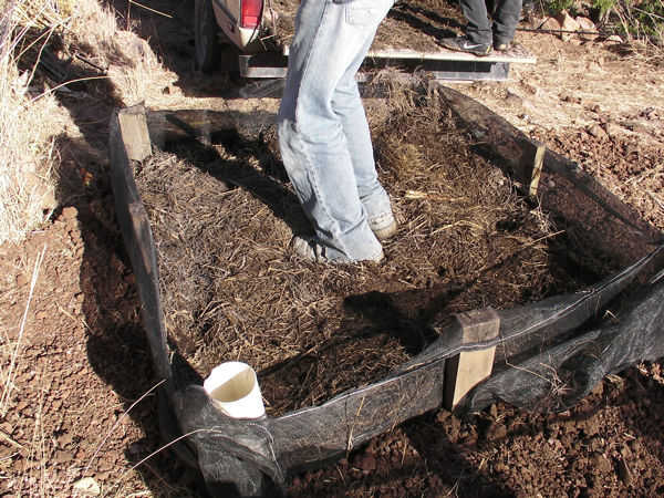 -Llenar las paredes de tela de cortina de tierra, 1 a 1 1/2 pies por encima de la grava. Compactarla como te va.