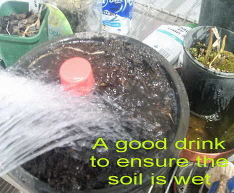 Saturar el terreno con un riego suave y también rellenar la botella de absorción a desbordar. Dejó siéntese hasta que deje de drenar y luego saturar nuevamente.