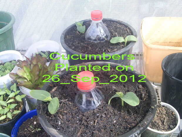 Ahora puede plantar su semilla en el bote. En este caso, elegí dos plántulas de pepino.