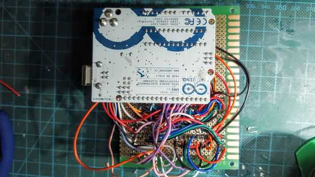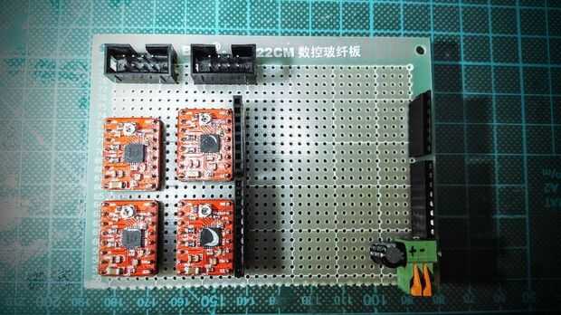 Revise la hoja de datos. Para este escudo, conecté todos los bolos de micro-escalonamiento de la pololus a los mismos pines de arduino: 10, 11 y 12. Que utiliza alfileres 2 a 9 para el paso y la dirección (1 chip: paso dir, pin2 - pin3 / / 2 chip: pin paso - pin4, dir - 5... etc). RESET y sueño están conectados juntos. Tienes dos motivos en el chip, se pueden conectar juntos y luego a la tierra principal.