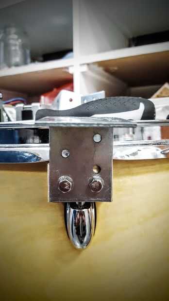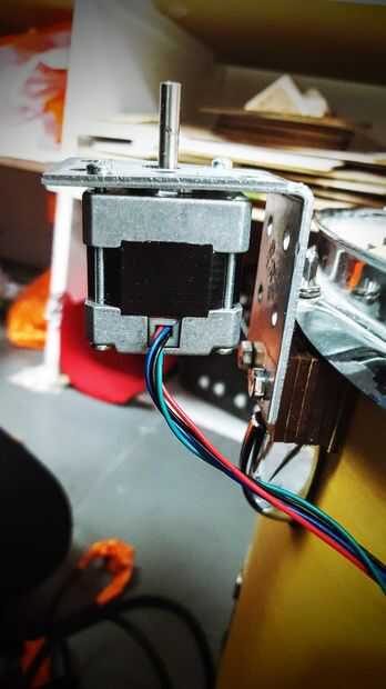 Coloque el motor en la parte superior del L y fijar los pernos con Ls metal pequeño (ver fotos) y 8 mm de largo. Puede poner una capa de goma antes de fijación del motor para bajar el sonido de las vibraciones.