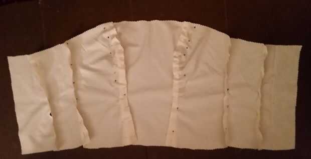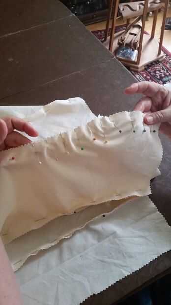 Antes de cortar en su hermoso material sería una excelente idea para unir una ensayo blusa de muselina. Puesto que todas las mediciones son semi exactas, esto le dará una oportunidad para adaptarse exactamente a la blusa. Prender las piezas del patrón de la muselina. Cortar y coser todas las piezas (sin necesidad de correas aquí). Cuando alfileres y cosiendo piezas parte delantera para el pedazo de delantero centro, el material que rodea el área del busto para ajustar la curva del patrón de la taza. PIN y coser juntos cuidadosamente para asegurar el busto zona conserva su forma. Clip las costuras cada vez que hay una curva en la costura. Trate de la parte superior en la forma del vestido o portador previsto. Utilice pernos para ajustar el patrón para caber exactamente. Eliminar de la forma y transferir sus ajustes a las piezas del patrón.