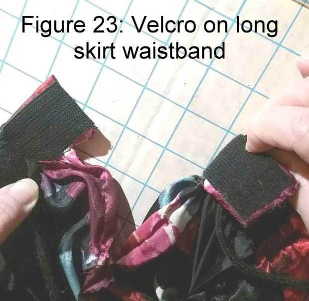 En la apertura trasera, doble vuelta el material de costura para formar una abertura terminada lisa y puntada de la mano. Corte una pulgada 1 1/2 pieza de 3/4" mediados de-a-pesado Velcro autoadhesivos. Adjuntar a cada extremo de la cintura. Vea la Figura 23.