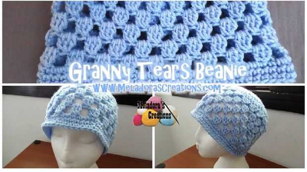 Este patrón de ganchillo gratis enseña cómo hacer un gorro de abuelita lágrimas con su pañuelo de lágrimas de la abuelita!
