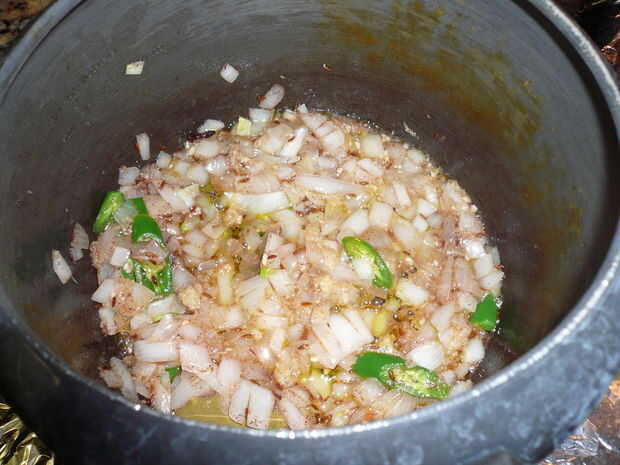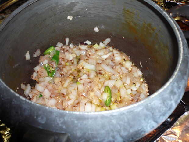 * Agregue cebollas picadas, sal y cocine hasta que cebollas estén transparentes.