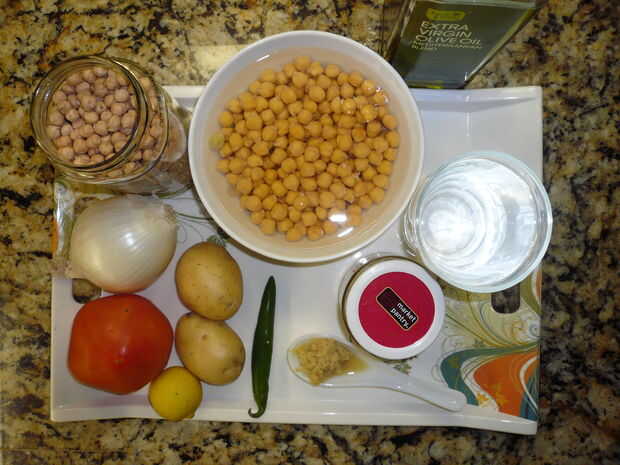 1 taza garbanzos crudos (lavado y remojo durante 6 horas mínimos - garbanzo se duplicará en tamaño,